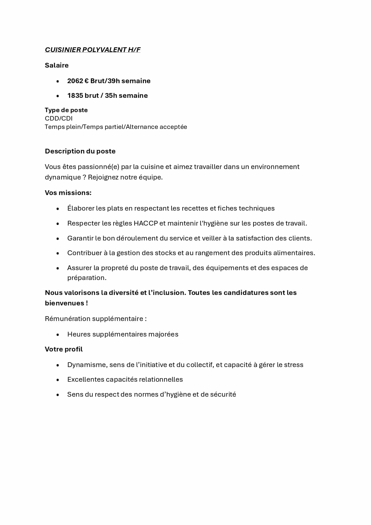 LE PARADIS DU FRUIT – CUISINIER POLYVALENT